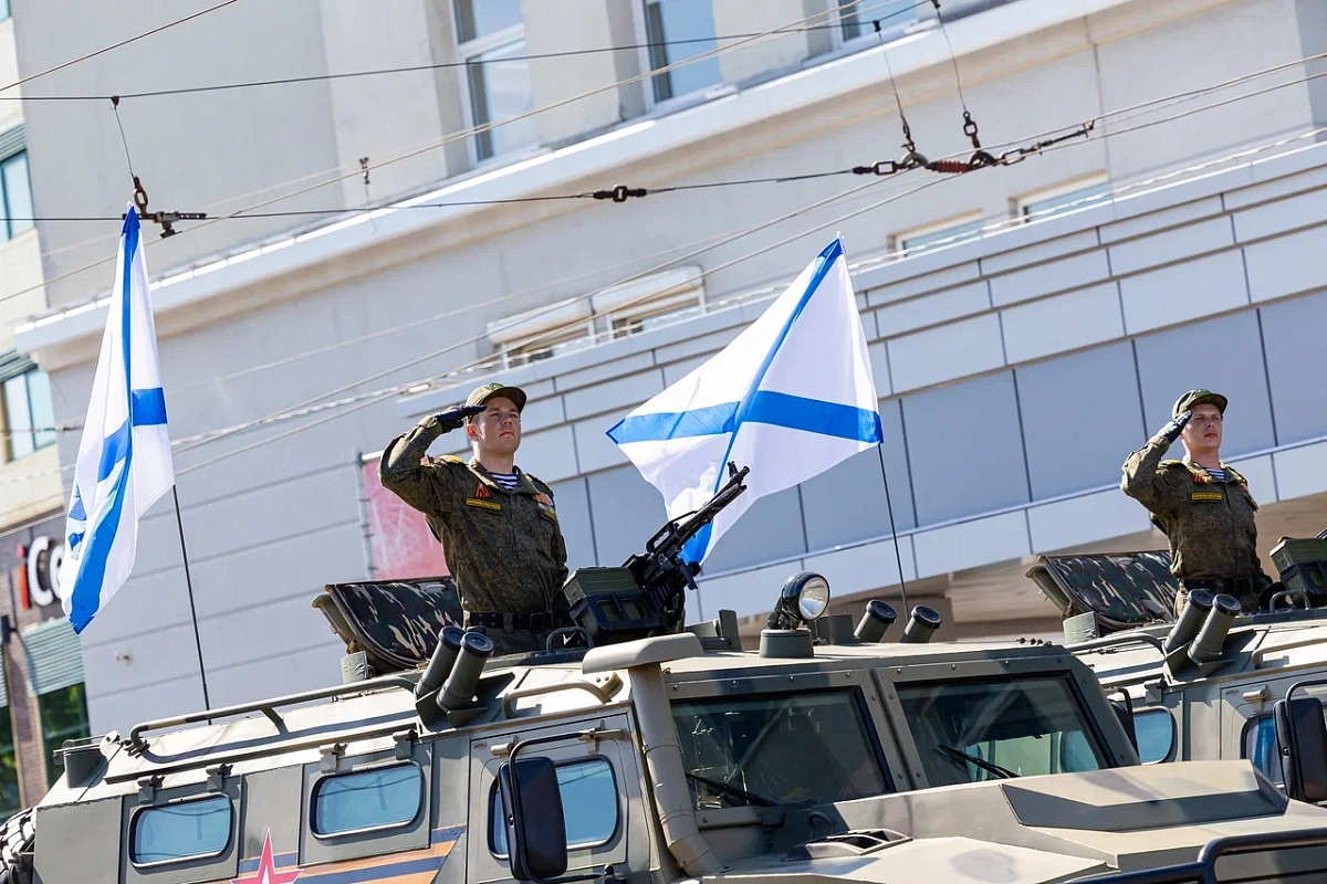 По центру города прошла техника военных лет, в том числе «Катюши», а почётное место в строю отвели танку Т-34, на борту которого было знамя Победы, штурмовавших в 1945-м город-крепость Кенигсберг. Механизированная колонна — более 70 единиц техники, стоящей на вооружении Балтийского флота. Гости парада наблюдали ракетные комплексы «С-400», зенитно-пушечные комплексы «Панцирь-С1», «Искандеры» и противокорабельные береговые ракетные комплексы «Бал» и «Бастион». Плюс — машины связи и радиоэлектронной борьбы.