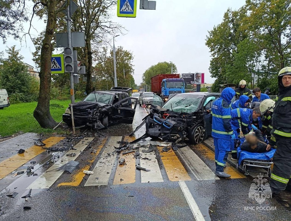 В Калининграде на пересечении улиц Транспортной и Суворова жёсткое столкновение двух легковых автомобилей — «БМВ» и «Мерседес». В результате ДТП оба водителя получили травмы.