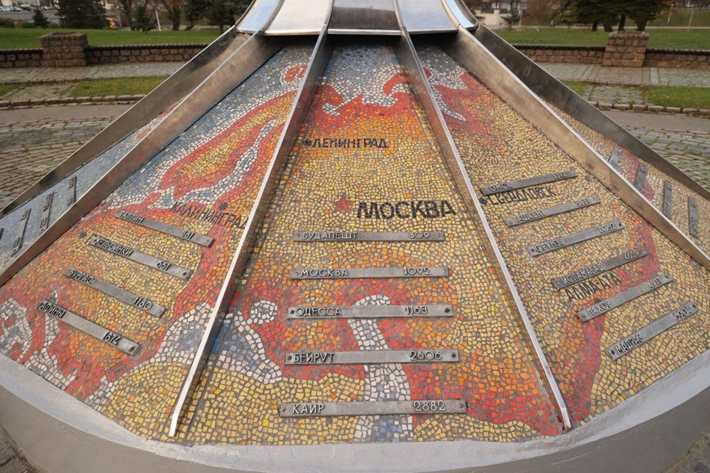 Специалисты провели масштабные работы, бережно сохранив исторический облик часов. Было восстановлено бетонное основание, отреставрирован мозаичный набор с использованием аутентичных материалов и полностью обновлён часовой механизм. Также привели в порядок металлическую конструкцию, вернули к жизни флюгер и установили 28 новых информационных табличек с указанием расстояний до столиц и крупных городов мира.