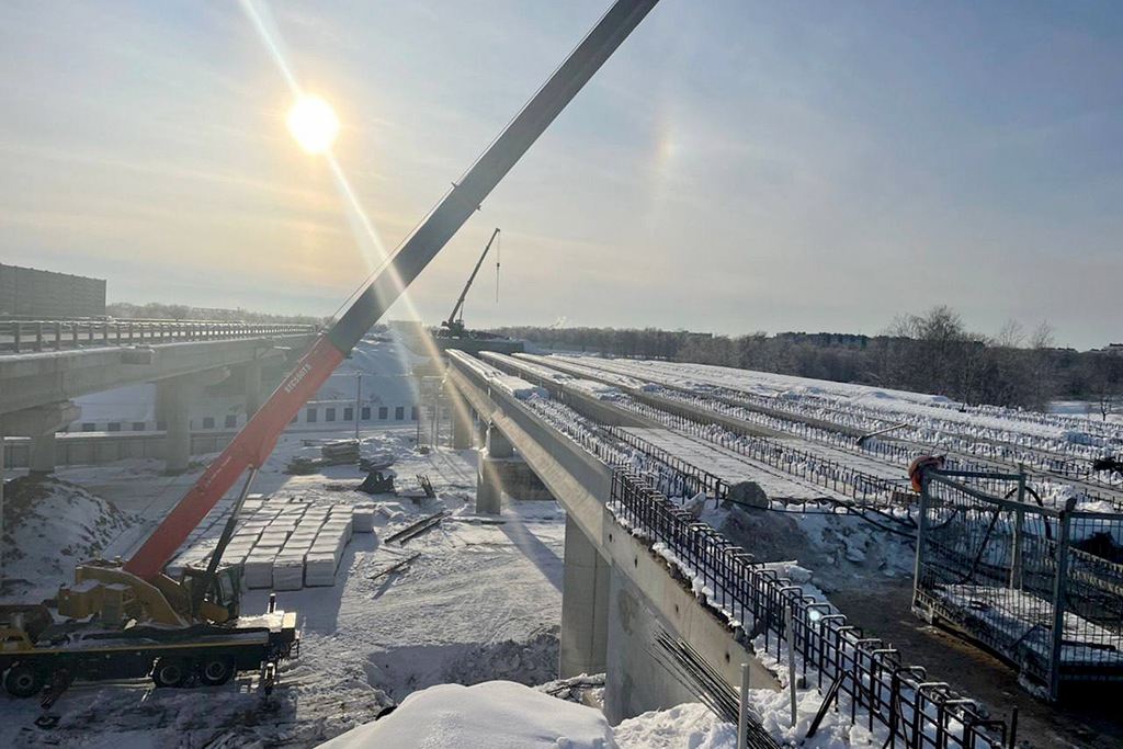 Параллельно в Калининграде возводят уникальный автодорожный мост через Преголю с вертикально-подъёмной системой для пропуска судов. Его готовность — около 50%.